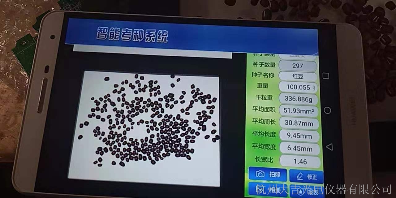 考種系統是由兩部分組成:背光裝置和裝有嵌入式軟件的平板。背光裝置采用的是高亮LED燈,外邊框是亞克力材料制作而成。軟件采用**的圖像處理技術,根據距離變換原理、形態學、凹點切分等技術綜合設計的一款嵌入式軟件。該設備主要應用在農業領域的田間作物測產及考種等,通過攝像頭拍攝的照片,軟件自動計算種子數量,種子的平均面積、平均周長、平均長度、平均寬度、長寬比等數據,根據天平所得的重量與種子的數量自動計算出千粒重;以列表和圖形的方式輸出結果,便于用戶查看與分析研究。本產品也可以手動對作物種子數量修正以確保計數精度、對數據進行保存,并且可以查看數據報表,*后可以將數據以Excel格式導出從而實現數據統計,分析智能化。